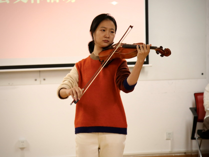 中央财经大学管弦乐团第二小提琴首席、会计学院助理教授张越老师为大家带来小提琴独奏,琴声悠扬回荡,赢得了老师们的热烈掌声。